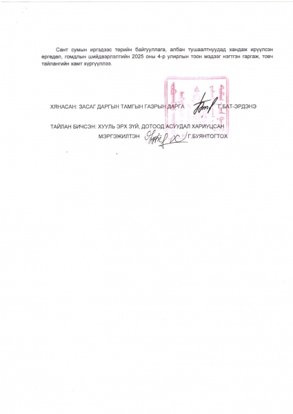 ӨРГӨДӨЛ, ГОМДЛЫГ ШИЙДВЭРЛЭХ ҮЙЛ АЖИЛЛАГААНЫ 2025 ОНЫ 4-Р УЛИРЛЫН МЭДЭЭНИЙ ТОВЧ ТАЙЛАН